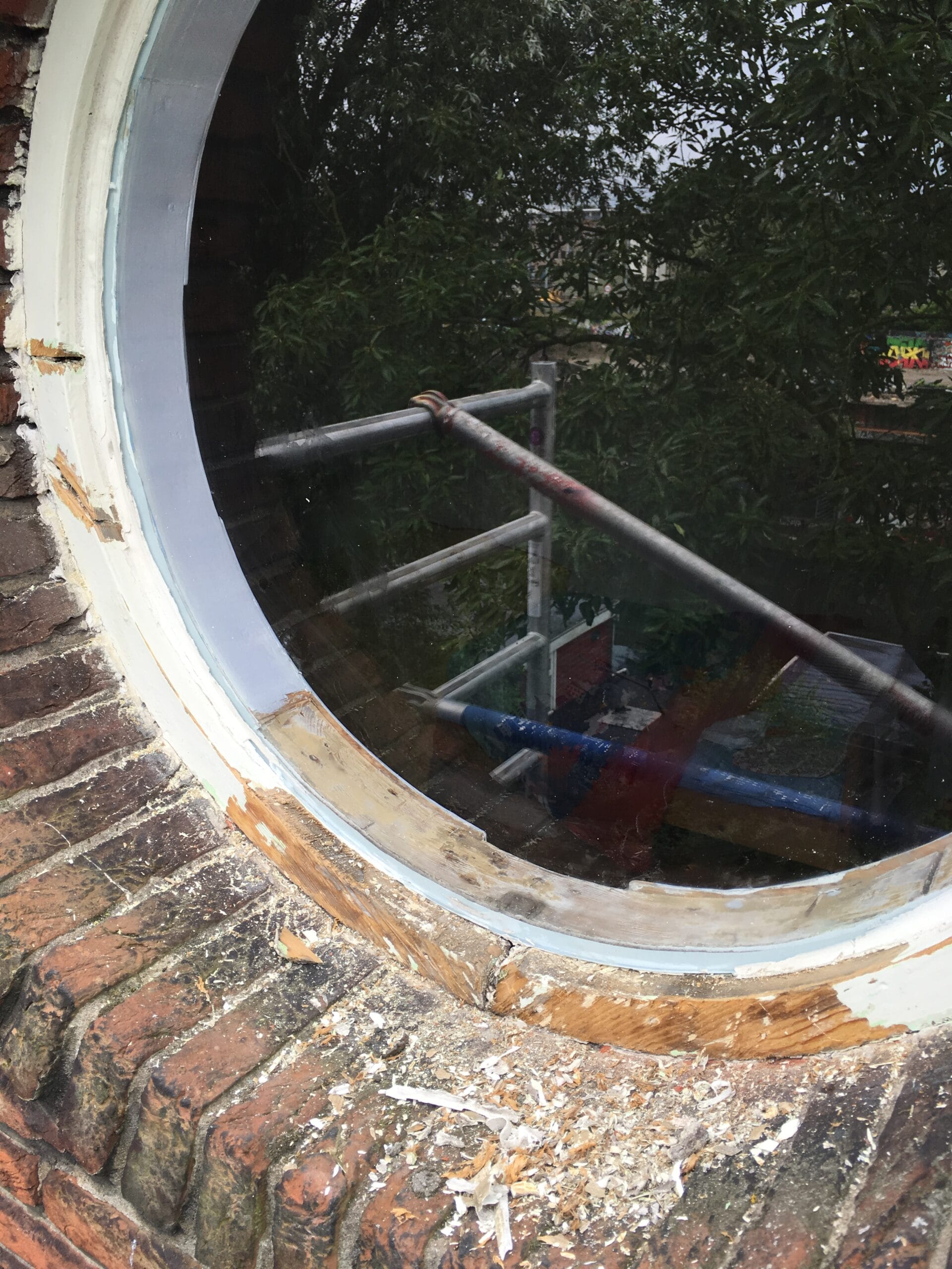 Epoxy reparatie aan prachtig rond raam.